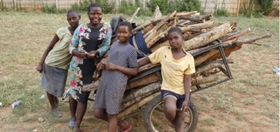 Hunyani family. Collecting firewood for fees. Mum is unwell. Travel at least 5 miles a day to go to school.